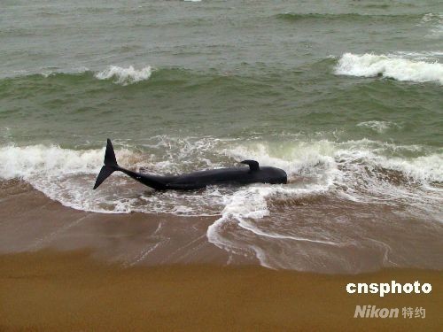 2008年8月7日,一只鯨魚擱淺博鰲玉帶灘。這張由海南博鰲邊防派出所提供的照片顯示,當天上午八時許,這只長約2米,重1000多斤不明種類的鯨魚擱淺博鰲玉帶灘,離出海口約200米遠的海灘邊,邊防派出所和瓊海漁政部門接報后立即派員前往救助。同在博鰲萬泉河出?,2005年5月2日,一只重約300多斤的鯨魚受傷擱淺岸邊,經搶救無效死亡。當?shù)貪O民認為,鯨魚擱淺常與大風暴有關。中新社發(fā) 蒙鐘德 攝