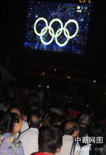 圖:臺(tái)灣民眾聚集戶外收看北京奧運(yùn)開幕式
