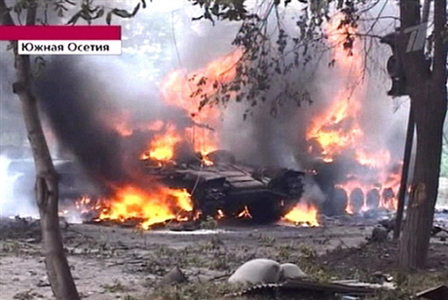 被燒毀的格魯吉亞軍隊(duì)坦克。