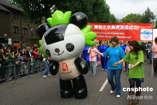 當(dāng)?shù)貢r(shí)間25日,歐洲最大規(guī)模的街頭文化藝術(shù)節(jié)——一年一度的英國(guó)諾丁山狂歡節(jié)在倫敦舉行。今年的狂歡節(jié)上,當(dāng)?shù)厝A人團(tuán)體的盛裝隊(duì)伍打出“英國(guó)華人慶祝北京奧運(yùn)圓滿成功”的橫幅,在福娃的帶領(lǐng)下走在狂歡節(jié)所有隊(duì)伍的最前面。
