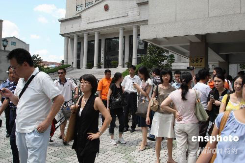 8月26日,上海第二中級(jí)法院電子信息牌上公告,轟動(dòng)滬上的“楊佳襲警案”將在下午一點(diǎn)開(kāi)庭。眾媒體被謝絕現(xiàn)場(chǎng)旁聽(tīng),許多媒體記者在法院門(mén)口觀望采訪。今年7月1日,北京籍男子楊佳闖入上海市閘北區(qū)政法辦公大樓,連續(xù)捅傷9名民警和一名保安,并致其中6名警察身亡,楊佳被當(dāng)場(chǎng)擒獲。中新社發(fā) 潘索菲 攝