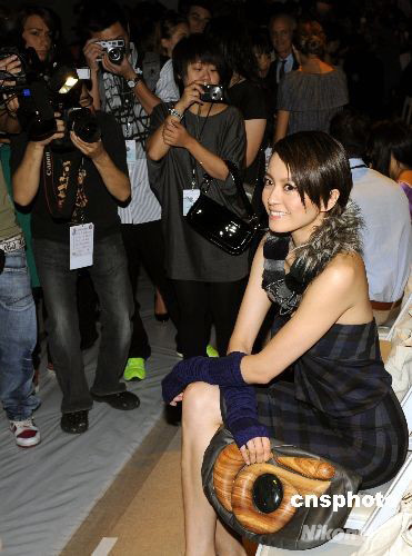 當(dāng)?shù)貢r間9月8日晚,在美國紐約市布萊恩特公園舉行的“2009紐約時裝周”上,香港明星梁詠琪,身著皮草圍脖搭配呢質(zhì)小禮服,到場觀秀,成為紐約時裝周上一個亮點。中新社發(fā) 曹堂 攝