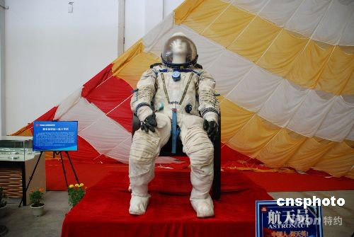 圖為價(jià)值五百萬(wàn)元的宇航服實(shí)物展品首次在中國(guó)國(guó)內(nèi)公眾面前亮相。
