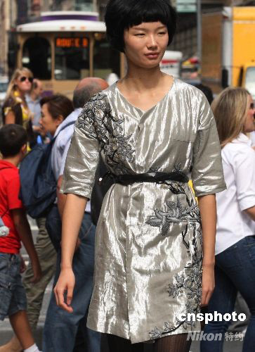 圖:名模李崢紐約街頭展示中國女裝作品(2)