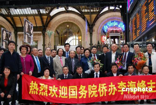 中國國務(wù)院僑辦主任李海峰在結(jié)束了法國馬賽的訪問行程后,十五日下午抵達(dá)法國首都巴黎,受到法華各界盛情歡迎。圖為法國數(shù)十個(gè)僑團(tuán)負(fù)責(zé)人和代表在巴黎里昂火車站迎接李海峰主任一行。中新社發(fā) 吳衛(wèi)中 攝