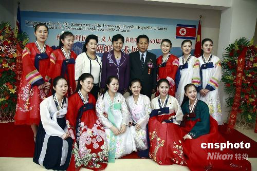 圖為中華人民共和國文化部文化部副部長趙少華(二排左四)、朝鮮民主主義人民共和國駐華大使崔鎮(zhèn)洙(二排左五)等出席開幕式。中新社發(fā) 邢利宇 攝