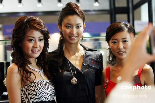九月十八日,應屆香港小姐冠軍張舒雅、亞軍陳倩揚及季軍馬賽應邀到“香港珠寶鐘表展”上,為香港珠寶制造業(yè)廠商主辦的“2008首飾設(shè)計比賽”擔任評判。中新社發(fā) 洪少葵 攝