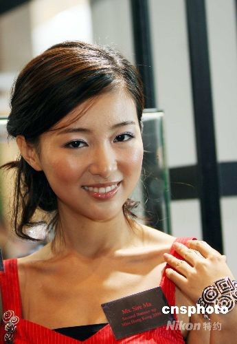 九月十八日,應(yīng)屆香港小姐季軍馬賽應(yīng)邀到“香港珠寶鐘表展”上,為香港珠寶制造業(yè)廠(chǎng)商主辦的“2008首飾設(shè)計(jì)比賽”擔(dān)任評(píng)判。中新社發(fā) 洪少葵 攝