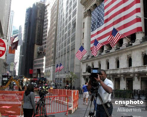 華爾街連日來大事連連,成為全世界媒體關注的新聞熱點。9月19日,多家媒體守候在紐約證券交易所門外,隨時準備播報華爾街第一手動態(tài)。中新社發(fā) 魏晞 攝