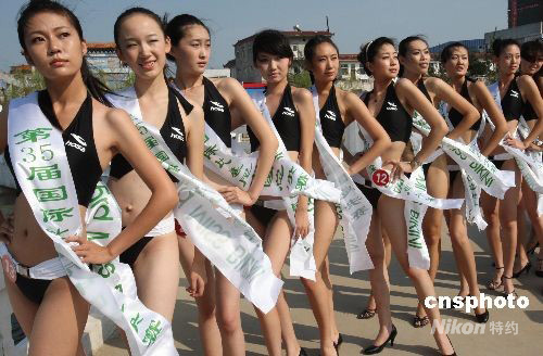 9月22日,第35屆國(guó)際國(guó)際比基尼小姐大賽中國(guó)區(qū)總決賽在中國(guó)北方名鎮(zhèn)白溝舉行,來自中國(guó)各地的40位比基尼選手參賽。中新社發(fā) 錢興強(qiáng) 攝