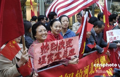 中國總理溫家寶于23日上午乘專機(jī)抵達(dá)紐約,當(dāng)?shù)財?shù)千華僑華人一早即聚集在他下榻的酒店附近夾道歡迎。中新社發(fā) 鄧悅 攝