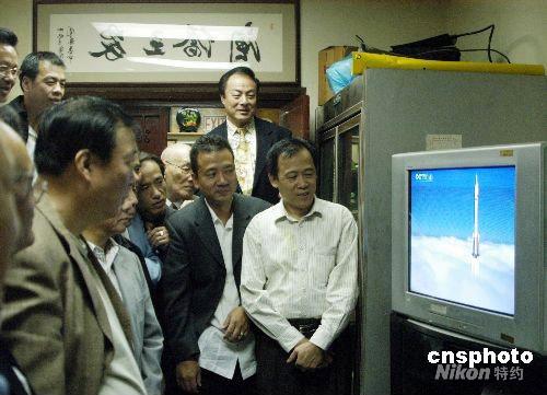 中國(guó)神州七號(hào)載人飛船發(fā)射成功,身在美國(guó)的華人華僑歡欣鼓舞,信心大振。紐約福建同鄉(xiāng)會(huì)重復(fù)播放“神七”升空的電視機(jī)前,總是站滿(mǎn)了觀看節(jié)目的僑胞。中新社發(fā) 魏晞 攝
