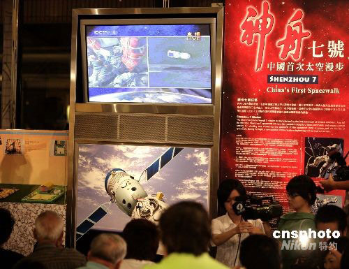 九月二十五日晚,香港市民在太空館觀看“神舟七號”升空直播。中新社發(fā) 張勤 攝