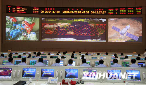 9月26日,科研人員在北京航天飛行控制中心對(duì)神舟七號(hào)進(jìn)行飛行控制。新華社記者 查春明 攝