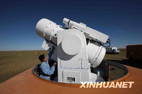 9月26日,在內(nèi)蒙古四子王旗神舟七號(hào)飛船主著陸場(chǎng),擔(dān)負(fù)向北京航天飛行控制中心實(shí)時(shí)傳輸圖像任務(wù)的光學(xué)實(shí)況記錄儀系統(tǒng)已做好準(zhǔn)備。 新華社記者 王建民 攝