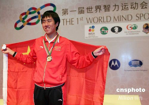 10月8日,首屆世界智力運動會國際象棋25分個人快棋賽在北京會議中心結(jié)束。中國棋手卜祥志加賽擊敗烏克蘭棋手科里波夫,獲得智運會中國首枚國象金牌。中新社發(fā) 富田 攝