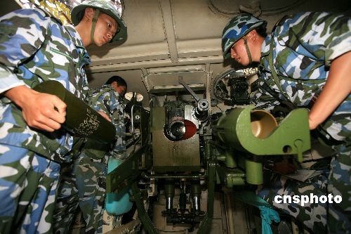 10月13日,中國海軍陸戰(zhàn)隊(duì)某旅在某地域組織自行榴彈炮實(shí)彈射擊考核。圖為官兵正在裝填炮彈。 中新社發(fā) 李唐 攝