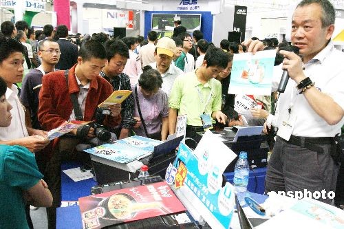 2008年10月16日,在蘇州國際博覽中心開幕的以“綠色科技、數(shù)字生活”為主題的第七屆中國蘇州電子信息博覽會上,許多參展企業(yè)豐富多彩的促銷活動,引人入勝,成為該展會上的一大亮點(diǎn)。 中新社發(fā) 蘇秀 攝