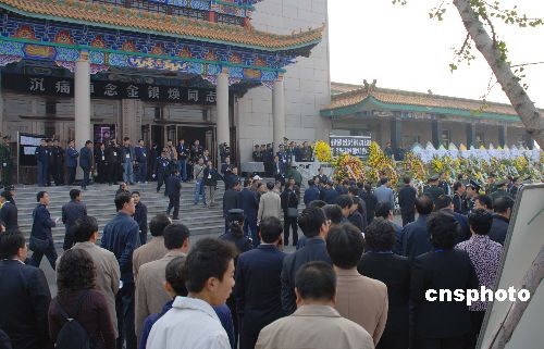 10月17日上午,山西省政協(xié)主席金銀煥遺體送別式在太原舉行。山西省政協(xié)主席金銀煥在忻州調(diào)研返并途中突遇車禍,于2008年10月11日13:40不幸殉職,終年56歲。中新社發(fā) 張雷杰 攝