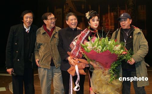 該組圖片攝于2005年1月6日晚,由劉曉慶領(lǐng)銜主演的大型歌舞話劇《金大班的最后一夜》在上海隆重上演。這部大型歌舞話劇是根據(jù)白先勇先生的作品改編而成的,著名導(dǎo)演謝晉到場祝賀并向慈善基金會(huì)捐款。中新社發(fā) 潘索菲 攝