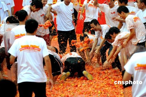 趣圖:廣東東莞上演萬人“番茄大戰(zhàn)”(2)