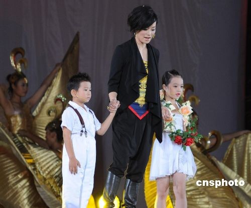 10月22日晚,第五屆中國(guó)—東盟博覽會(huì)暨第十屆南寧國(guó)際民歌藝術(shù)節(jié)晚會(huì)開(kāi)幕,中國(guó)內(nèi)地知名女歌手毛阿敏身穿肚兜亮相。中新社發(fā) 蔣雪林 攝