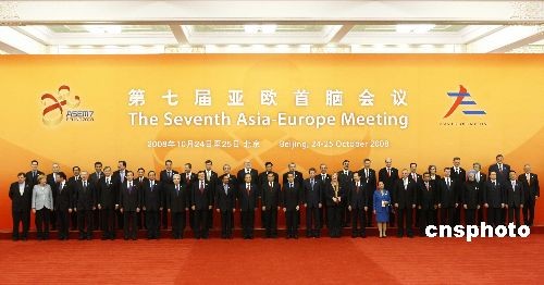 胡錦濤、溫家寶與出席亞歐首腦會(huì)議各國領(lǐng)導(dǎo)人合影(3)