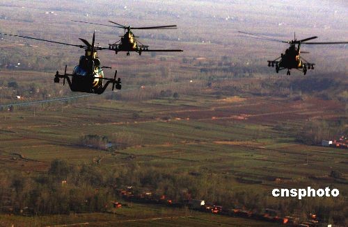 10月24日,中國人民解放軍濟(jì)南軍區(qū)參加“前鋒--2008”演習(xí)部隊在訓(xùn)練基地集結(jié)完畢,裝甲、陸航部隊進(jìn)入訓(xùn)練階段。這次演習(xí)以信息化條件聯(lián)合作戰(zhàn)為背景,進(jìn)行實(shí)兵、實(shí)彈演練,將有二百余名外國軍人、留學(xué)生參觀。據(jù)悉,這是中國軍隊首次大規(guī)模對外國留學(xué)生開放軍事訓(xùn)練演習(xí)。中新社發(fā) 宋吉河 攝