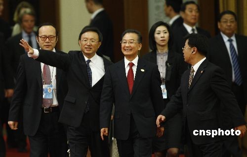中國國務(wù)院總理溫家寶出席并主持會議。中新社發(fā) 盛佳鵬 攝