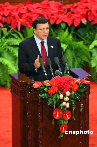 歐盟委員會(huì)主席巴羅佐在開(kāi)幕式上講話。中新社發(fā) 廖文靜 攝