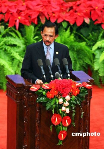 文萊蘇丹哈桑納爾在開幕式上講話。中新社發(fā) 廖文靜 攝