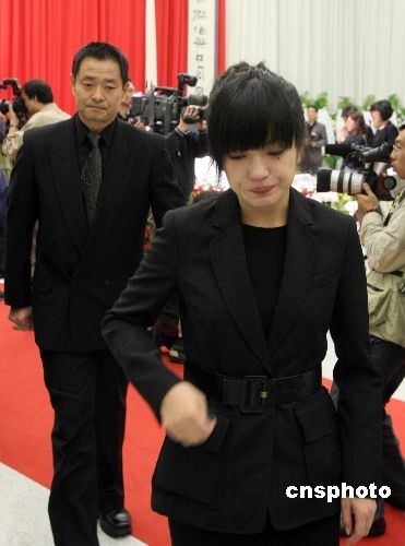 影視明星趙薇(前)以及濮存昕到場(chǎng)送別一代電影大師。中新社發(fā) 湯彥俊 攝