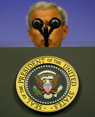 布什在美國海外退全軍人協(xié)會全國大會上發(fā)表講話時,麥克風(fēng)恰好擋住了他的眼睛。作者:旺仔