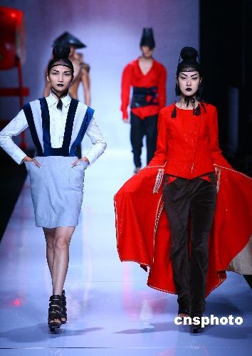 2008年10月30日,模特在2008上海時(shí)裝周國際品牌發(fā)布會上表演。本季設(shè)計(jì)師最新秋冬作品靈感來自于中國象棋。中新社發(fā) 睿瀛 攝