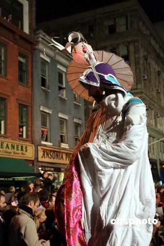 10月31日晚,第三十五屆“紐約格林威治村萬(wàn)圣節(jié)游行”隆重登場(chǎng),曼哈頓六大道人山人海,盡管面對(duì)金融風(fēng)暴,但紐約客依然“群魔亂舞”,極盡瘋狂。中新社發(fā) 彭偉祥 攝
