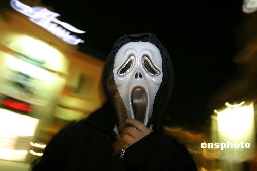 10月31日,北京朝陽區(qū)SOLANA藍(lán)色港灣商區(qū)舉行萬圣節(jié)廣場假面舞會,吸引眾多游人前來狂歡。中新社發(fā) 魯谷 攝