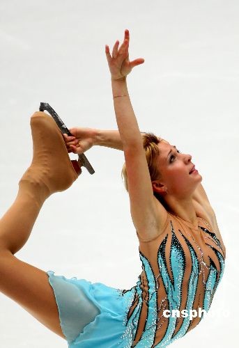 俄羅斯選手里奧諾娃出戰(zhàn)女單短節(jié)目比賽。