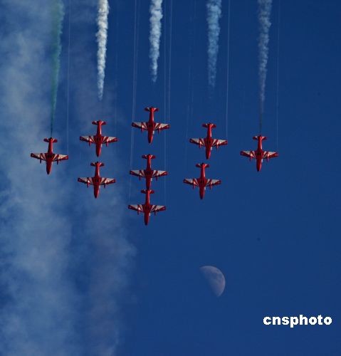 11月6日,印度空軍“陽光”飛行表演隊(duì)的9架飛機(jī)在第七屆珠海“航展”上為觀眾作了數(shù)十個(gè)飛行科目表演。中新社發(fā) 譚超 攝