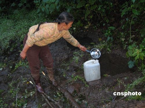 11月2日凌晨,云南楚雄發(fā)生泥石流災(zāi)害。受災(zāi)最為嚴(yán)重的楚雄市西舍路鄉(xiāng)新華村大路邊小組的320名村民臨時(shí)轉(zhuǎn)移至距災(zāi)害現(xiàn)場兩公里的大光山上,但因交通中斷,救援物資很難運(yùn)進(jìn)災(zāi)區(qū),民眾只能到附近的山谷的小水潭中打水。圖為一位災(zāi)民到山谷中打水,以解決暫時(shí)吃水困難問題。