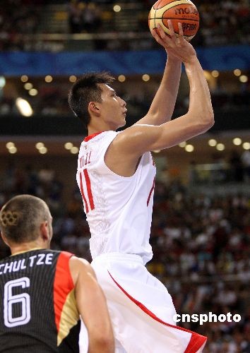 北京奧運會男子籃球小組賽第四輪比賽中的易建聯(lián)。中新社發(fā) 任晨鳴 攝