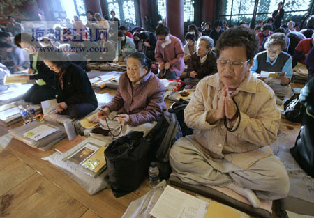 韓國(guó)婦女在寺廟里為參加高考的孩子祈禱