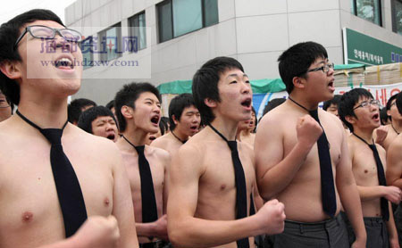 低年級(jí)男生赤膊為前輩壯行。(圖片來(lái)源:海峽都市報(bào))