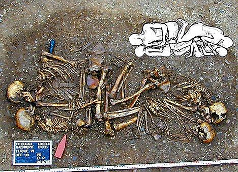 德國考古學家日前在安哈爾特尤魯?shù)貐^(qū)一個石器時代墓地發(fā)現(xiàn)了距今4600年前石器時代一個核心家庭(僅由父母及子女組成)的墓葬——墓室中埋葬著母親、父親以及兩個孩子的尸骨。