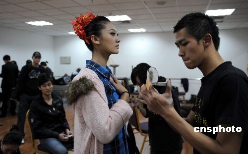 圖為總決賽開始之前,參賽選手在化妝間精心準(zhǔn)備。中新社發(fā) 廖攀 攝