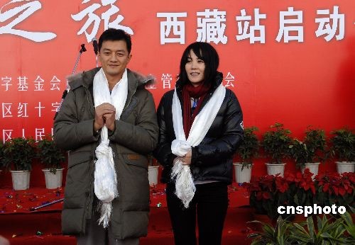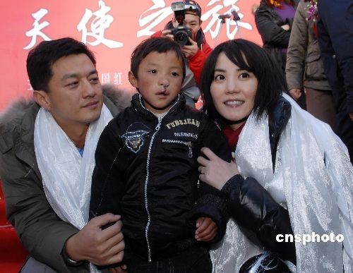 儀式前,中國(guó)紅十字基金會(huì)副秘書長(zhǎng)劉選國(guó)和李亞鵬、王菲夫婦到醫(yī)院病房看望了第2008名受助患兒崗瓊尼霞和其他9名住院患者;儀式后,他們帶著禮物和祝福來(lái)到貢桑家中,看望術(shù)后出院的受助患兒崗拉央金。