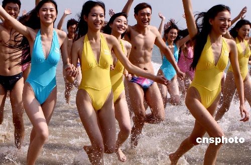 11月30日,2008新絲路中國模特大賽總決賽在海南三亞拉開帷幕,是次參賽的選手年齡最小為16歲,最大的選手為24歲。新絲路中國模特大賽至今已經(jīng)成功舉辦15屆。圖為參賽佳麗在三亞泳裝展示風(fēng)采。中新社發(fā) 錢興強(qiáng) 攝
