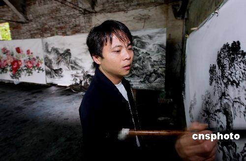 著名的奧運(yùn)之鄉(xiāng)、全國舉重之鄉(xiāng)廣西桂林五通鎮(zhèn),依靠桂林常年旺盛的游客資源,農(nóng)民繪畫產(chǎn)業(yè)蓬勃發(fā)展。全鎮(zhèn)800多農(nóng)民從事繪畫,年產(chǎn)值達(dá)8000多萬元,成為名副其實(shí)的藝術(shù)之鄉(xiāng),全國文化(美術(shù))產(chǎn)業(yè)示范基地。中新社發(fā) 王麗南 攝