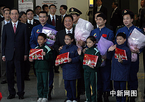 十二月五日,“神舟七號”載人航天飛行代表團(tuán)抵達(dá)香港國際機(jī)場,展開為期四天的訪港行程。四十多人的代表團(tuán)包括團(tuán)長張建啟、航天員翟志剛、劉伯明和景海鵬,以及負(fù)責(zé)這次載人航天工程的各主要系統(tǒng)指揮或設(shè)計師。