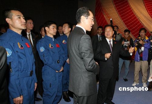 十二月六日,“中國首次太空漫步航天展”在香港科學(xué)館揭幕,神舟七號返回艙、航天服和航天員出艙后所展示的國旗等珍貴展品和圖片在展會上亮相。