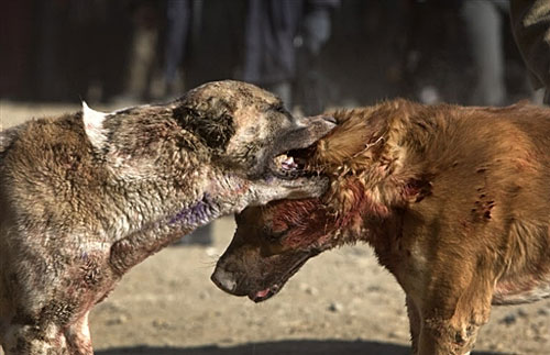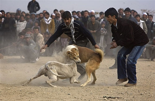 近日,阿富汗舉行了斗狗比賽,數(shù)千名當?shù)厝司奂诳Σ紶柦纪庥^看該項比賽。